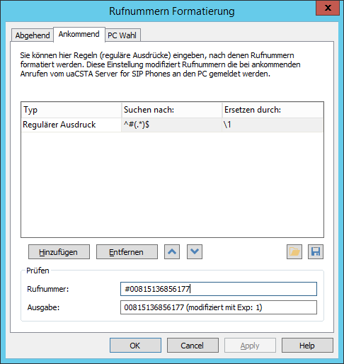 Im ECSTA for SIP Phones Standort eine Regel für Ankommende Anrufe erstellen.