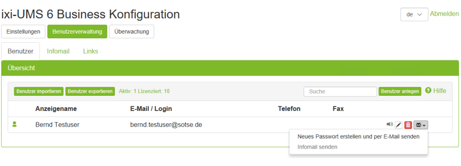 Bei lokaler Benutzer Verwaltung bietet ixi-UMS folgende Möglichkeiten