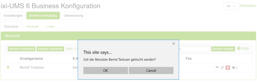 Eine Pseudonymisierung ist in ixi-UMS Business derzeit nicht vorgesehen. Einzelne Benutzer können über die ixi-UMS Business Konfiguration gelöscht werden.