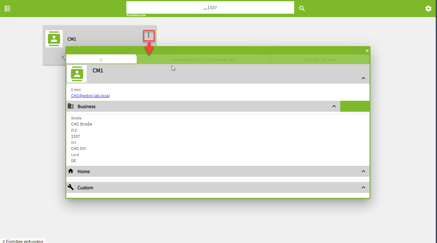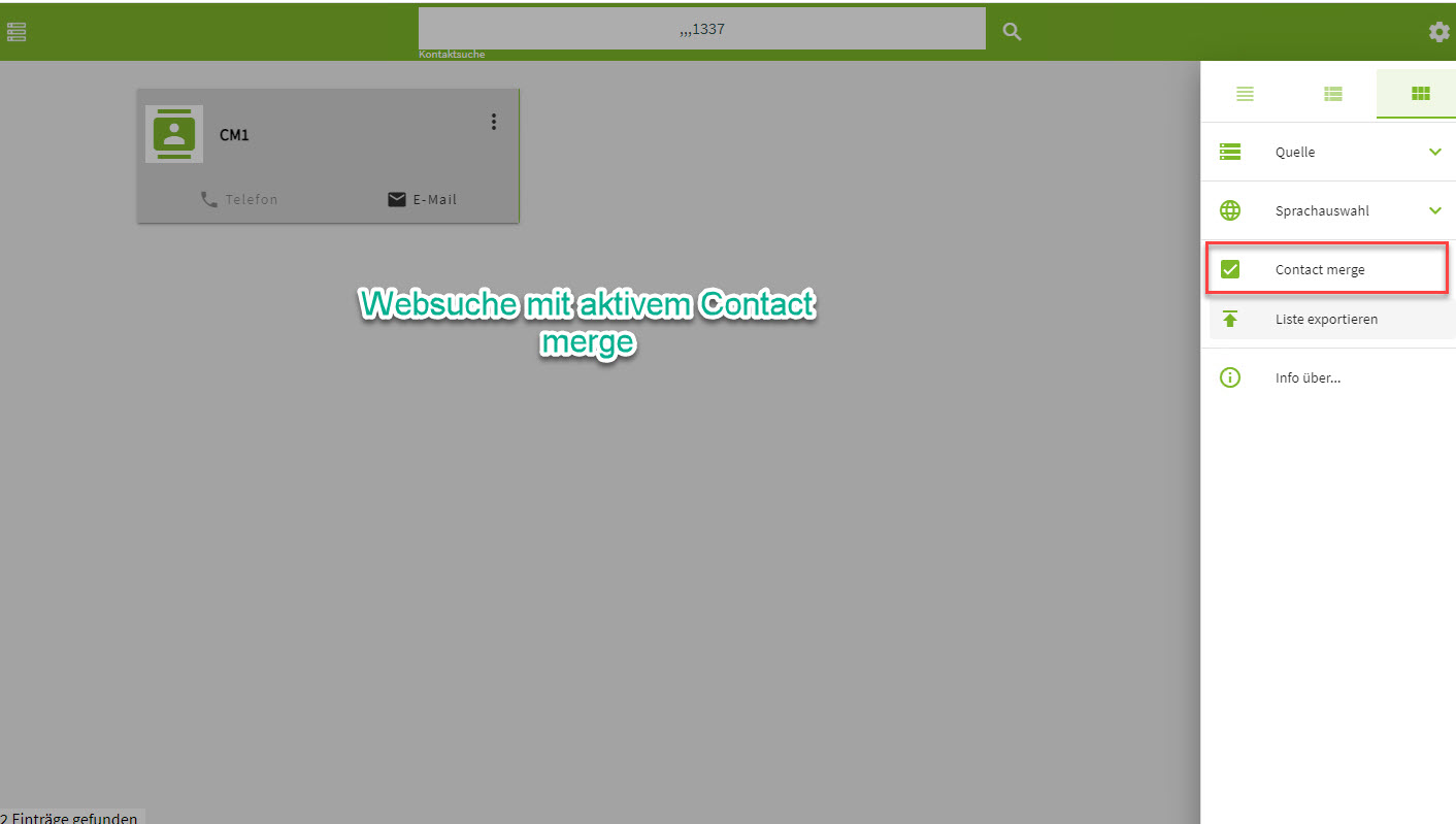 Mit aktivem Contact Merge wird auf der Web-Oberfläche nun folgendes ausgegeben: