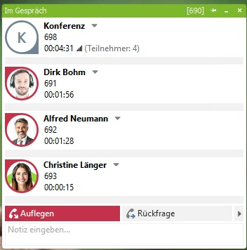 Beispiel Screenshot: ProCall Gesprächsfenster - Rückfrage - Konferenz