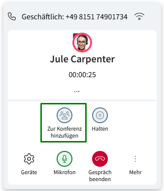 | Option 1: Teilnehmer über parallelen Anruf zur Konferenz hinzufügen