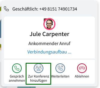 Option 2: Eingehenden Anruf zur Konferenz hinzufügen