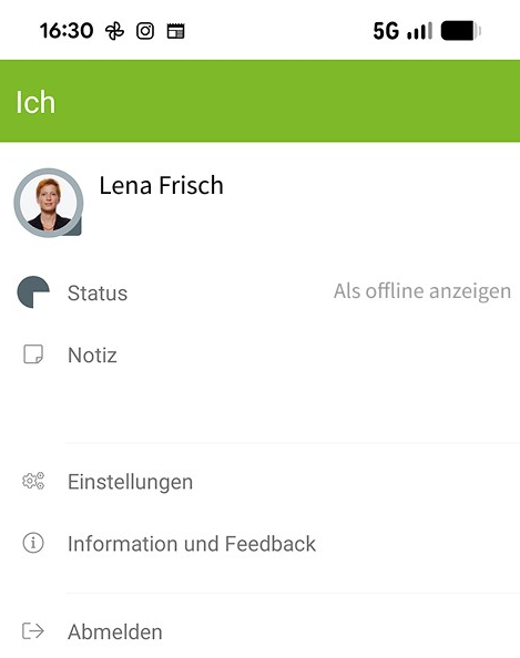 Beispiel Screenshot ProCall Mobile - Präsenz "Als Offline anzeigen" auswählen