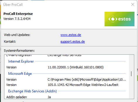 Microsoft Edge WebView2-Laufzeit wird nicht automatisch mit dem ProCall Client für Windows ausgeliefert, sondern muss gesondert installiert werden.