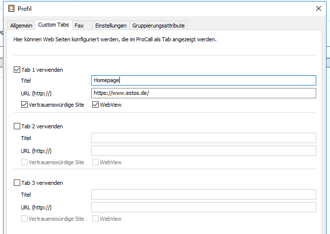 Einrichten von Custom Tabs für ProCall Enterprise