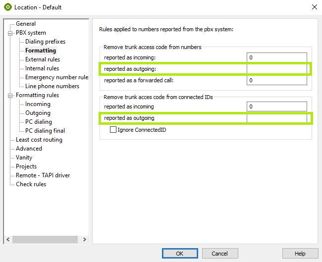 In diesem Fall wird die Rufnummer vom TAPI-Treiber der Telefonanlage oder des Telefons mit einer Null zu wenig übergeben.
