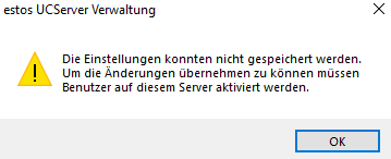 - "Die Einstellungen konnten nicht gespeichert werden. Um die Änderungen übernehmen zu können müssen Benutzer auf diesem Server aktiviert werden." oder