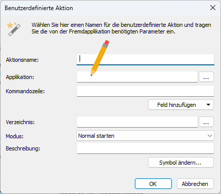 Unter Applikation ist immer eine dedizierte Anwendung auszuwählen, die dann mit den unter Kommandozeile angegebenen Parametern ausgeführt wird.