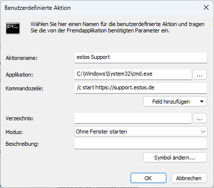 Beispiel Screenshot für den Aufruf der estos Support Seite im Standardbrowser