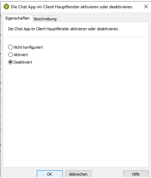 Wählen Sie dort den Punkt "Die Chat App im Client Hauptfenster aktivieren oder deaktivieren"