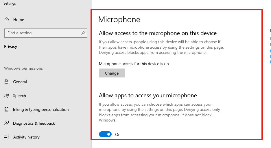 In Microsoft Windows Mikrofon-Datenschutzeinstellungen (Einstellungen\Datenschutz\Mikrofon) die Option "Apps die Verwendung meines Mikrofons erlauben" aktivieren.