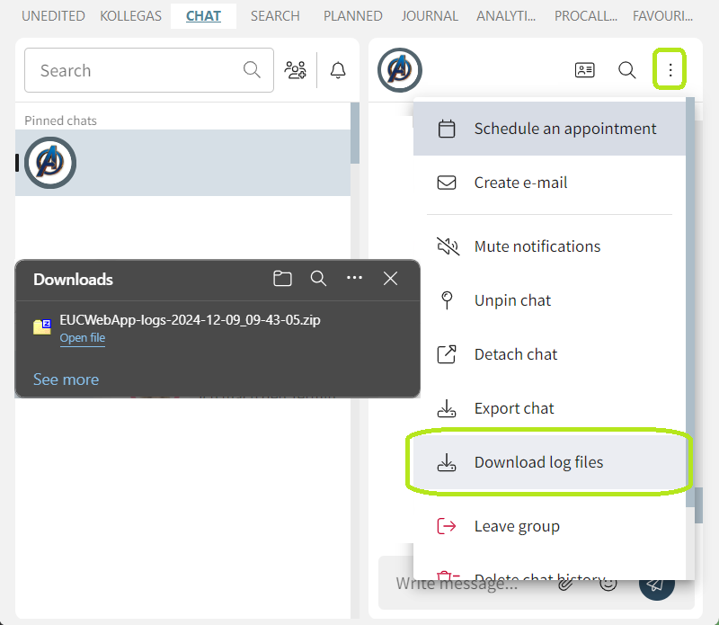 Die in ProCall 8 Enterprise neu eingeführte Chat App basiert auf Webtechnologien und orientiert sich im aktuellen Produktdesign nicht an den üblichen oben beschriebenen Logging-Mechanismen des ProCall Enterprise Clients.