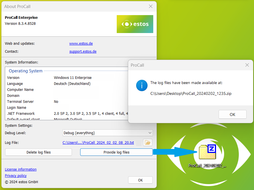 Dieser Artikel erklärt, wie Sie ein sogenanntes Debug-Log des ProCall Clients erstellen und für die Analyse bereitstellen können.