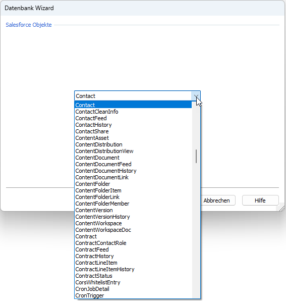 Auswahl der Salesforce Objekte