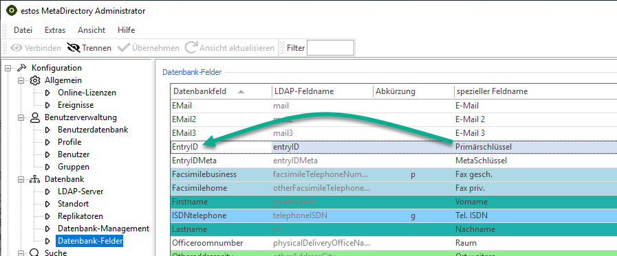 Die ID des Kontakts ist eindeutig und wird daher standardmäßig dem Feld Primärschlüssel zugeordnet.