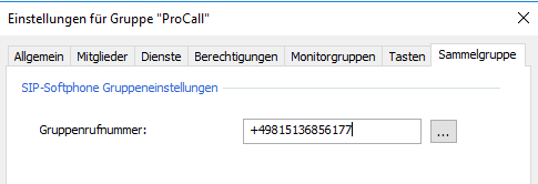 Beispiel Screenshot: Einstellungen für Gruppe - Sammelgruppe - SIP-Softphone Gruppeneinstellungen - Gruppenrufnummer