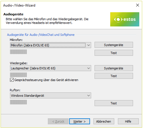 Einrichtung Jabra EVOLVE 65 unter Audiogeräte im ProCall Client