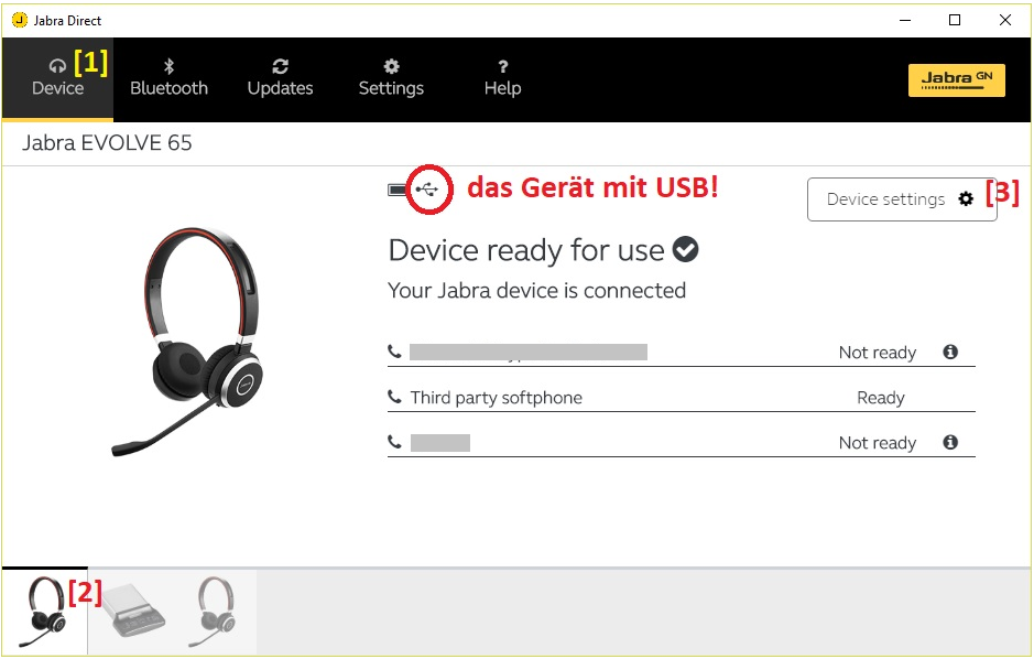 Beispiel Screenshot: Jabra Direct - Device Settings