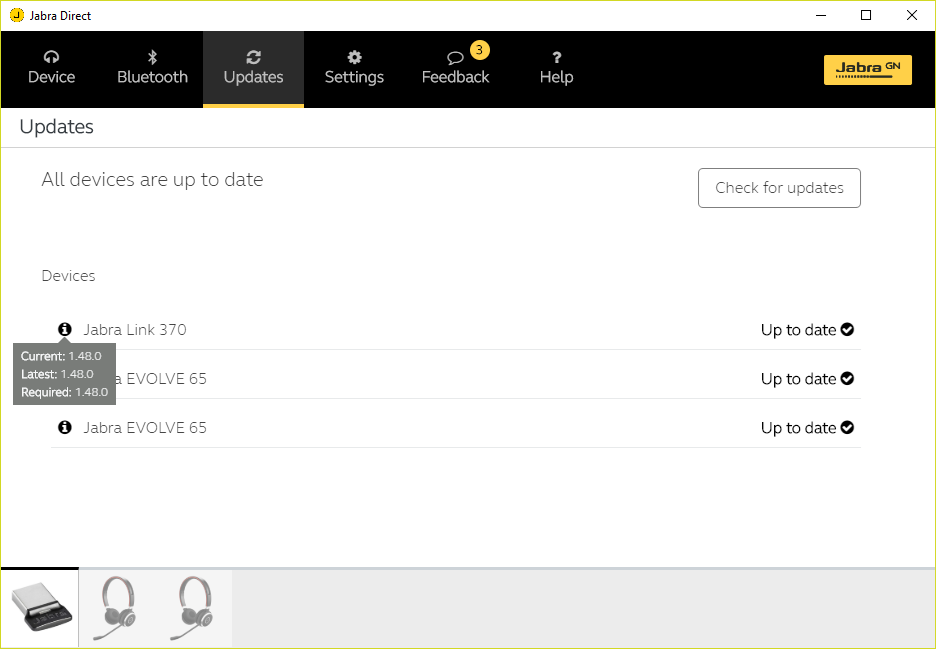 Beispiel Screenshot: Jabra Direct - Updates - Jabra Link 370 - Info - Up to date