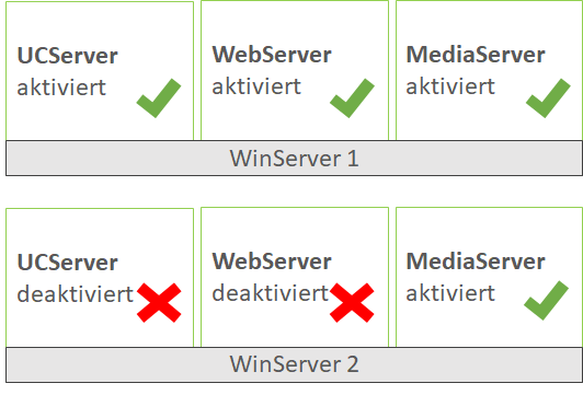 Es werden zwei abgesetzte UC MediaServer betrieben.