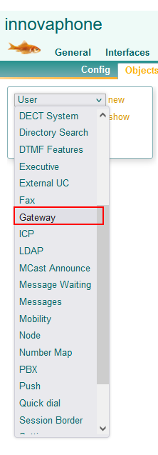 Im nächsten Schritt geben Sie den Namen des Gatewayobjektes und das Passwort ein. Aktivieren Sie die Anmeldung als "Main Trunk User".