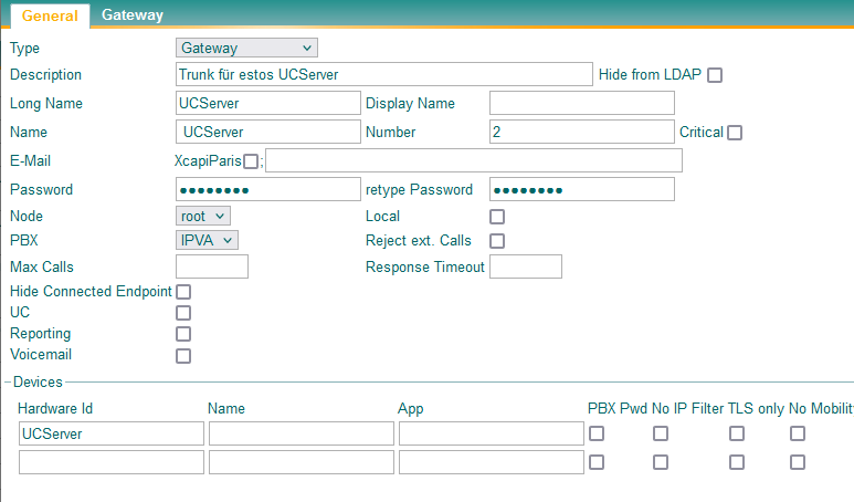 Beispiel Screenshot Gateway - Trunk für UCServer - Number