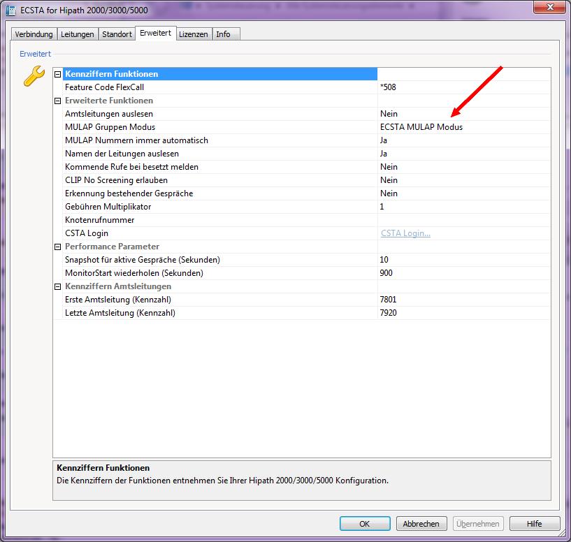 Beispiel Screenshot: Einstellungen - ECSTA - Erweitert - MULAP Gruppen Modus