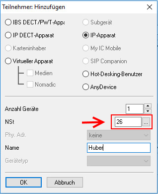 Beispiel Screenshot: Teilnehmer hinzufügen - IP-Apparat - NSt
