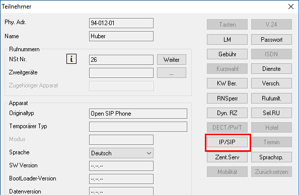 Nach Erstellen des Teilnehmers müssen die Einstellungen unter IP/SIP bearbeitet werden.