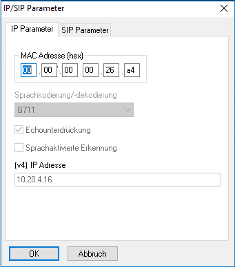 Beispiel Screenshot: IP/SIP Parameter - IP Parameter