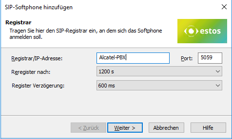 Unter Registrar/IP-Adresse für Alcatel PBX ist der Port für die Verbindung von SIP-Endgeräten in der Alcatel-Lucent OXO Connect standardmäßig auf 5059 eingestellt.