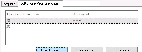 Tragen Sie die Verbindung zur Telefonanlage unter Softphone Registrierungen als „SIP-Softphone“ ein.