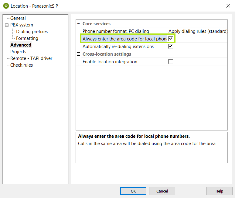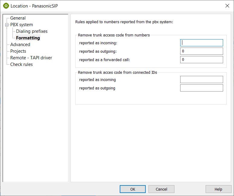 Beispiel Screenshot: Standort PanasonicSIP unter Telefonanlage - Formatierung
