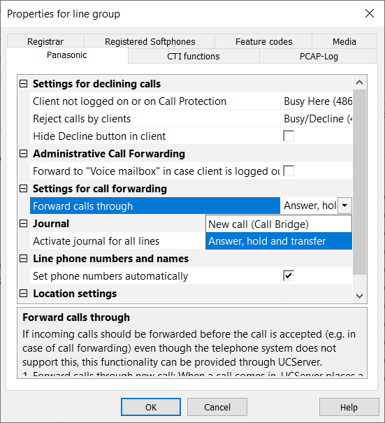 Des weiteren sind die Einstellungen für die Rufweiterleitung zu beeinflussen. Die Standardmethode an einer Panasonic Telefonanlage für Rufe weiterleiten durch ist eingestellt auf die Methode Annehmen, halten und transferieren.
