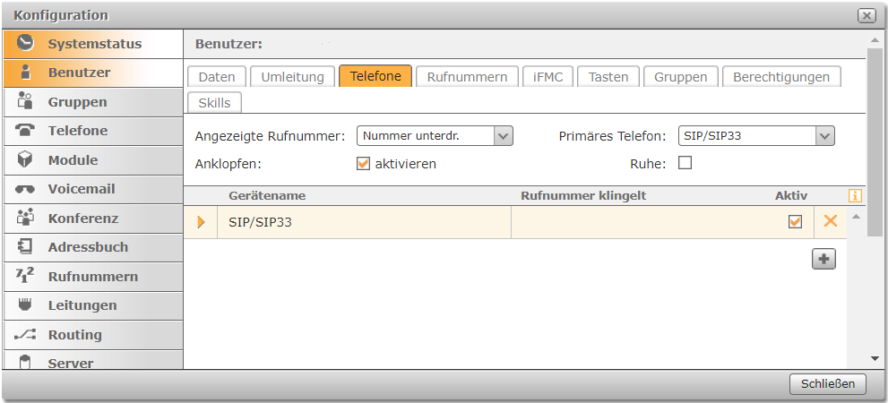 Beispiel Screenshot STARFACE Konfiguration - Benutzer - Telefone