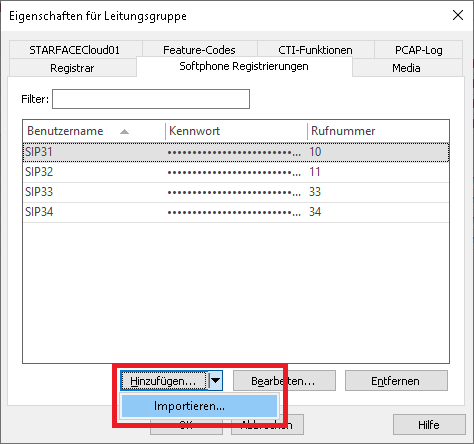 Weitere Softphone-Leitungen können jedoch auch nachträglich hinzugefügt oder via Dateiimport angelegt werden.