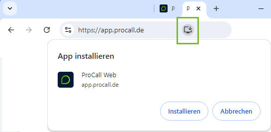 Beispiel Screenshot: Browser - ProCall Web - App installieren