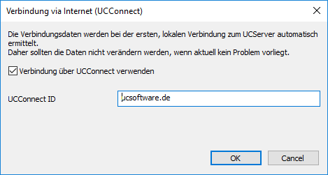 Beispiel Screenshot UCServer Konfiguration -Verbindung via Internet (UCConnect) - Verbindung über UCConnect verwenden - UCConnect ID