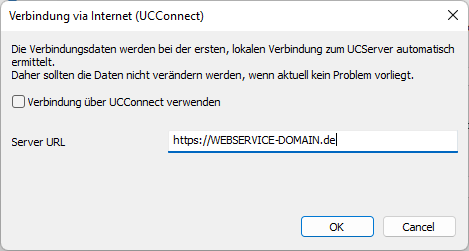 Beispiel Screenshot UCServer Konfiguration -Verbindung via Internet (UCConnect) - Server URL