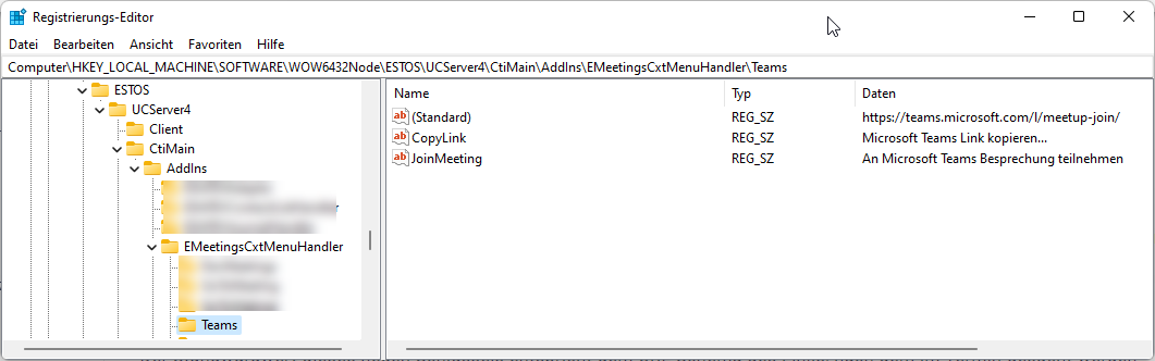 [HKEY_LOCAL_MACHINE\SOFTWARE\WOW6432Node\ESTOS\UCServer4\CtiMain\AddIns\EMeetingsCxtMenuHandler\Teams]