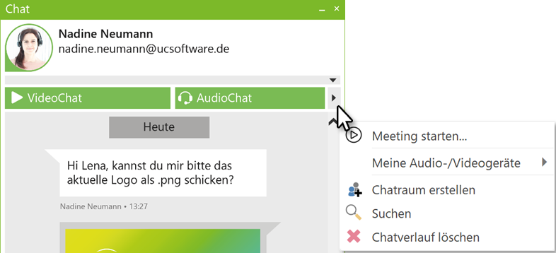 Die Funktionalität im Chatfenster oder Gesprächsfenster orientiert sich 1:1 an der Funktionalität oben beschrieben für das Kontextmenü.