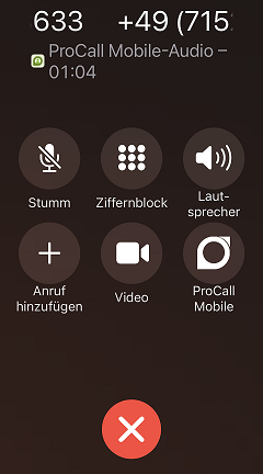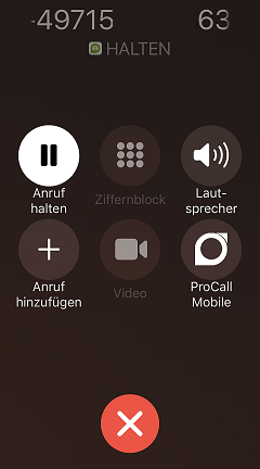 Die Verfügbarkeit der Funktion ist u. a. abhängig von iOS Version, Systemumgebung, Konfiguration und den unterstützten Features der Telefonanlage. In ProCall Enterprise ist die Funktion ab Version 7.0.12 der Mobile App und ab Version 7.0.1 von ProCall 7 Enterprise freigegeben.