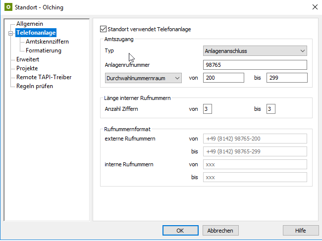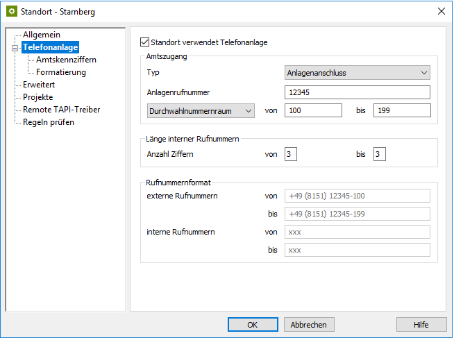 Beispiel Screenshot Standort 2  - Telefonanlage - Durchwahlnummernraum