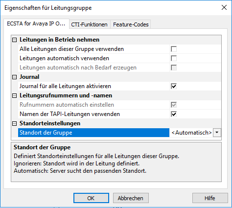 SIP-Softphone Leitungsgruppen für die Anbindung von Telefonanlagen, bei denen die Rufnummern nicht automatisch aus den Benutzernamen ermittelt werden können, dürfen nicht auf die automatische Standortermittlung eingestellt werden.
