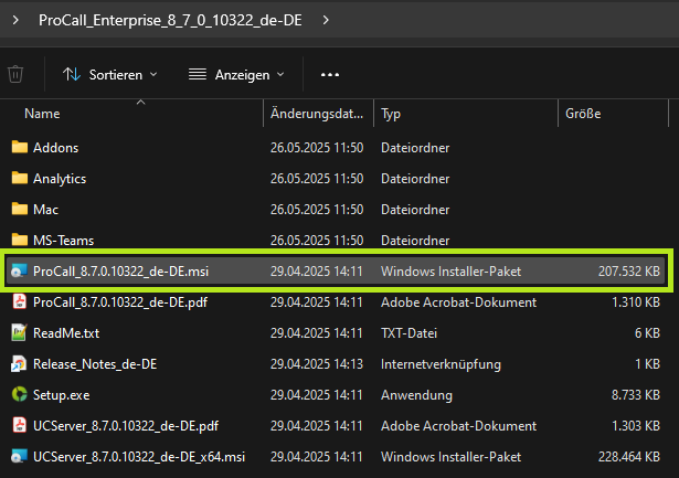 Die Installationsvoraussetzungen finden Sie bei ProCall 8 Enterprise Systemvoraussetzungen bzw. der dem Installationspaket beigefügten PDF-Datei.