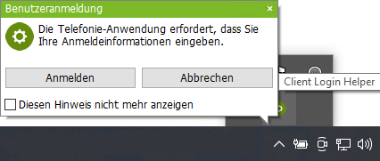 Wird der Remote TAPI-Treiber ohne den ProCall Enterprise Client verwendet, steht den Benutzern in der Taskleiste das Symbol zur Anwendung Client Login Helper zur Verfügung: