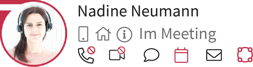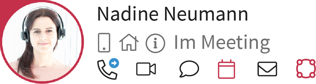 Andere ProCall Benutzer, die in Ihrem Unternehmen am selben UCServer angemeldet sind, sehen damit automatisch, dass Sie im Meeting und nicht erreichbar sind.