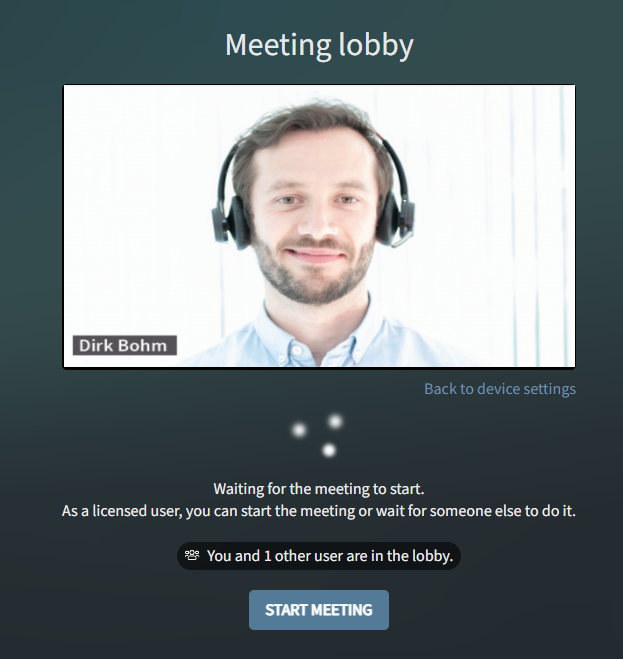 Beispiel Screenshot: Lobby - Lizenzierter Benutzer wartet in der Lobby und kann das Meeting starten