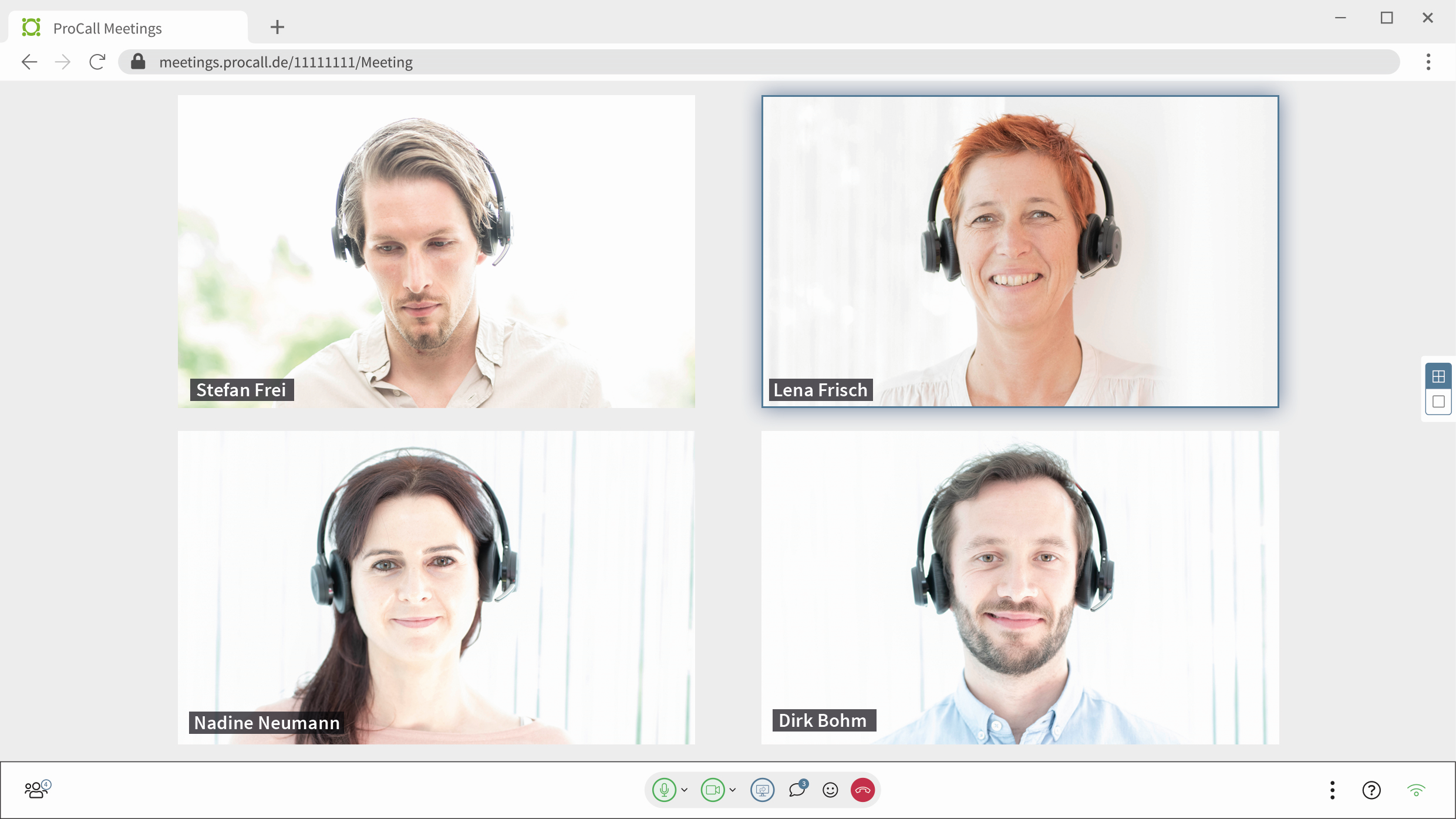 Beispiel ProCall Meetings - Videokonferenz mit vier Teilnehmern - Sprecher aktiv